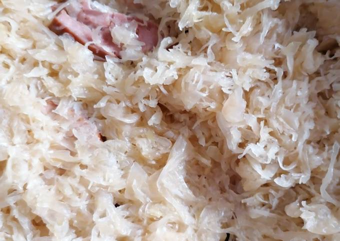 - Einen großen Topf nehmen, gebe nun Öl hinein. 200g Sauerkraut darin verteilen und darauf den Kassler legen. Wieder Sauerkraut darauf verteilen und das Ganze mit Wasser bedecken. Lorbeerblatt hinzufügen und ca. 4 Stunden leicht kochen lassen. Dann mit Pfeffer abschmecken und mit Brot oder Kartoffelbrei servieren. Guten Appetit. 😉.