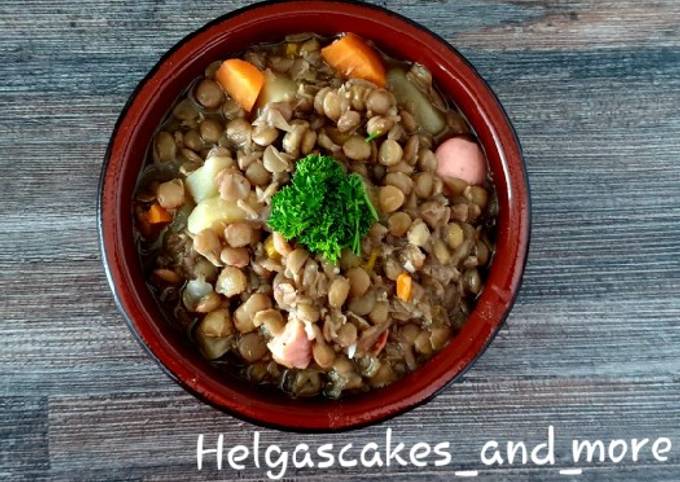 Hi Ihr Lieben, ein hier das neue Letitcook Rezept Linseneintopf. Vielleicht gefällt euch auch dieses Rezept. Mit Würstchen und einem guten Brot dazu ergibt dieser Linseneintopf ein leckeres Hauptgericht, das schnell zubereitet und auch gut vorbereitet und Dieses Rezept für einen deftigen Linseneintopf ist ein Klassiker unter den Eintöpfen und schmeckt fast jedem. Mutter. Linseneintopf mit Kasseler und Wienerle sehr gut geeignet, um mit der Familie und Verwandten zu essen. Keine Angst vor Schwierigkeiten, denn ein gesundes Menü zuzubereiten dauert nicht lange. Das Rezept ist einfach und die benötigten Zutaten sind leicht zu finden. Du kannst kochen Linseneintopf mit Kasseler und Wienerle using 11 zutaten und 2 zubereitung. So kochst du es.