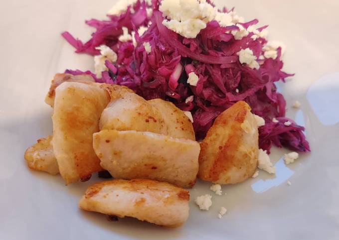 Der einfachste weg zu Erstellen Fabelhaft Rotkohlsalat mit gebratenem Hähnchen und Feta - Einen Versuch Wert Worth!