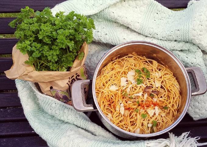 Zutaten für Spaghetti mit Pilz - Sahnesauce
