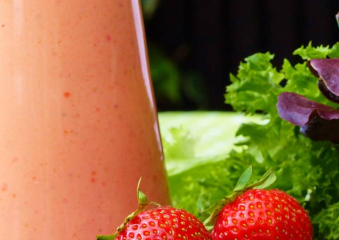 Erdbeervinaigrette. Alle Zutaten für die Vinaigrette mit einem Mixer zu Erdbeer Vinaigrette. Schmeckt wunderbar zu allen Blattsalaten, z. Ein leichtes Erdbeer Vinaigrette um dein Salat im Sommer aufzupeppen!