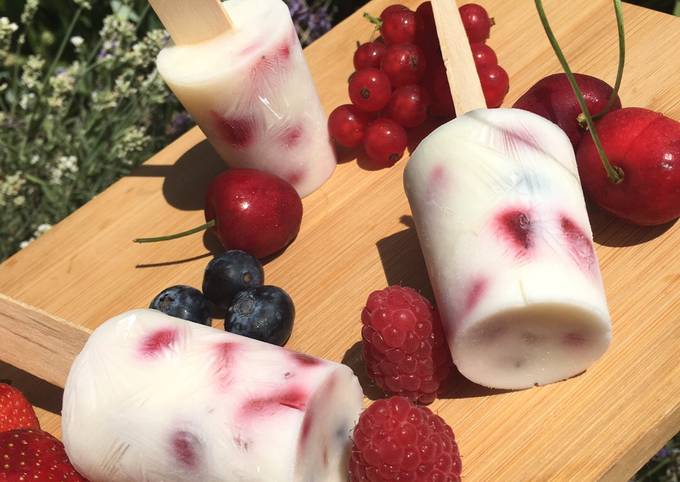 Stiel-Eis-Förmchen, ein paar Beeren, etwas Joghurt und genießt dieses erfrischende geschmackvolle Eis, was im Handumdrehen zubereitet ist. Sogar das Tiefkühlen fällt hier weg. Joghurt, tiefgekühlte Beeren - wahlweise Himbeeren, Erdbeeren, Heidelbeeren. Eis danach sofort geniessen oder einfrieren. Im Sommer geht oft schnell: Man kauft frische Beeren, schafft es nicht alle auf einmal aufzuessen und schon am nächsten Tag fangen sie an matschig zu.